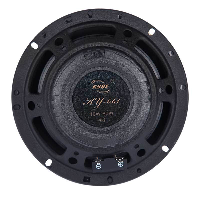 Model:KY-661 (6.5) 2-way component speaker Power:40W-80W Tweeter :20mm PEIDOME Voice Coil:25.5mm Nominal Impedance Ohms :4 Magnet: 11oz Frequency Range:45Hz-20KHz Sensitivity:90db Material(cone):Injection Molding PP Cone