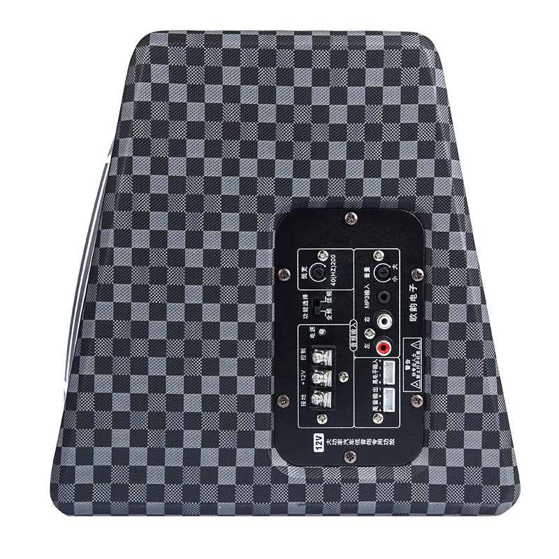 Model:JD-8AD Speakers size:8 Working Voltage:DC9.6v-15.6v Recommended Voltage:DC14V Sensitivity:90db amplifier power:150W Low-pass filter:40HZ-200HZ Nominal Impedance Ohms :4 woofer:100 magnetic 38 core Frequency Range:40Hz-20KHz Biggest pow